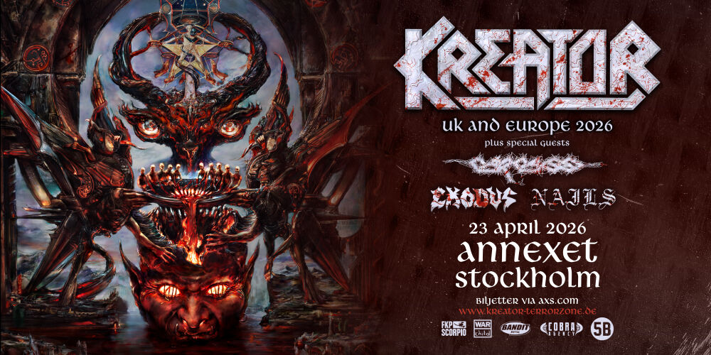 23 april intar legendarerna Kreator Annexet i Stockholm för en exklusiv konsert. Med sig har de banden Carcass, Exodus och Nails som special guests för att leverera en helt brutal kväll. Publiken i Stockholm kan vänta sig ett explosivt set som spänner från de tidiga klassikerna till nytt material – framfört med den kompromisslösa energi och kraft som har gjort Kreator till en institution inom extrem metal i mer än fyra decennier.